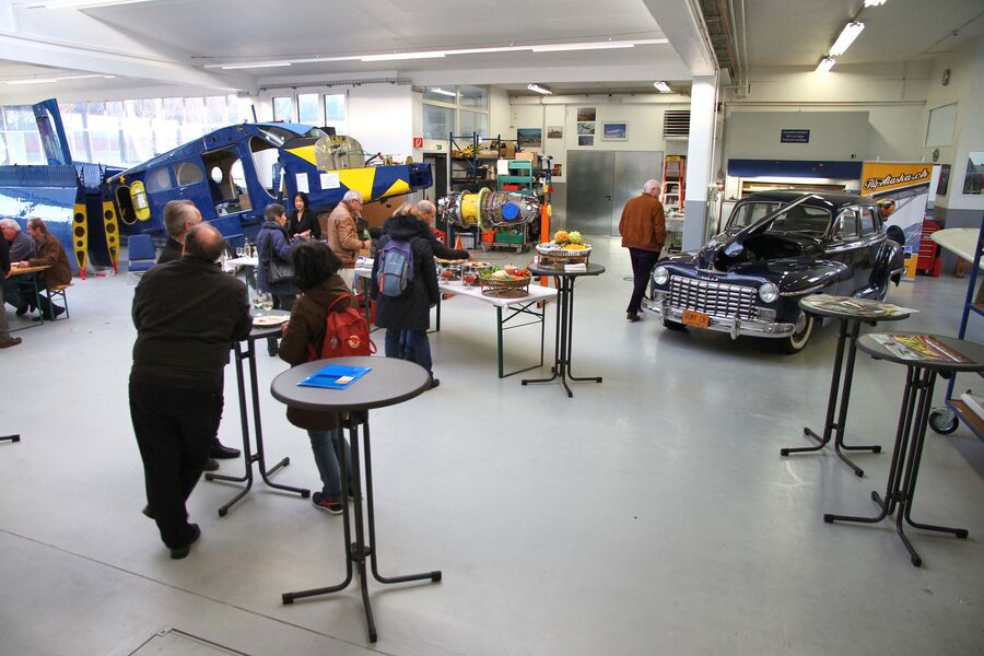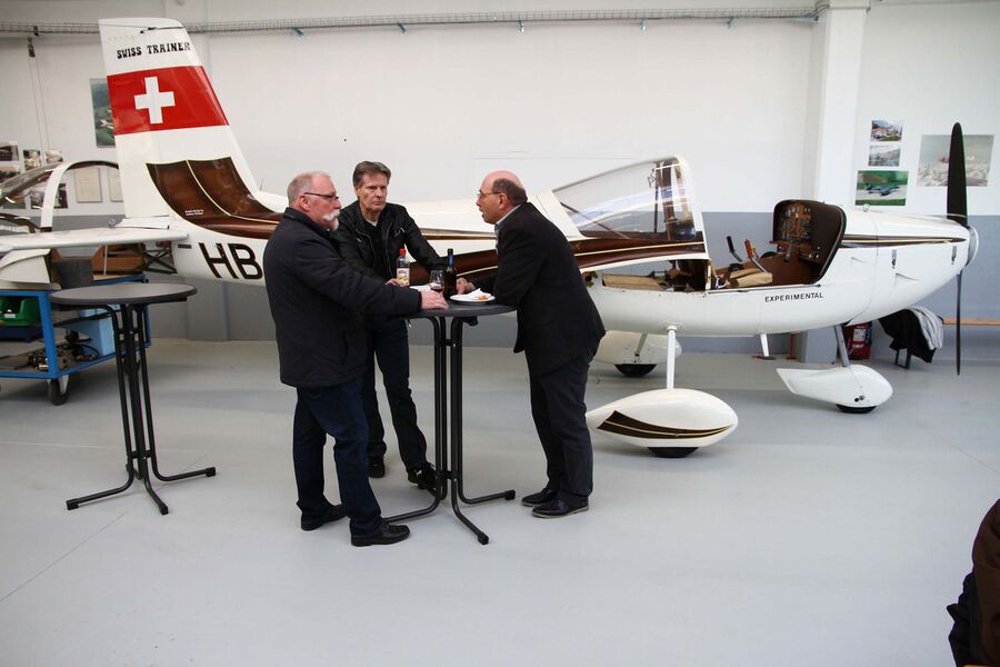 Dass Tische und Bänke für den Apéro in einem weiteren Hangar umgeben von einem SWISS TRAINER, einem Pilatus PC-6 in Totalrevision und einem Dodge-Veteranenauto aufgestellt waren, war nur noch das «Tüpfelchen auf dem i». Einen besonders herzlichen Dank möchten wir Peter Dätwyler und seinen Mithelfern für die Gastfreundschaft, Offenheit und perfekte Organisation dieses gelungenen Anlasses aussprechen.