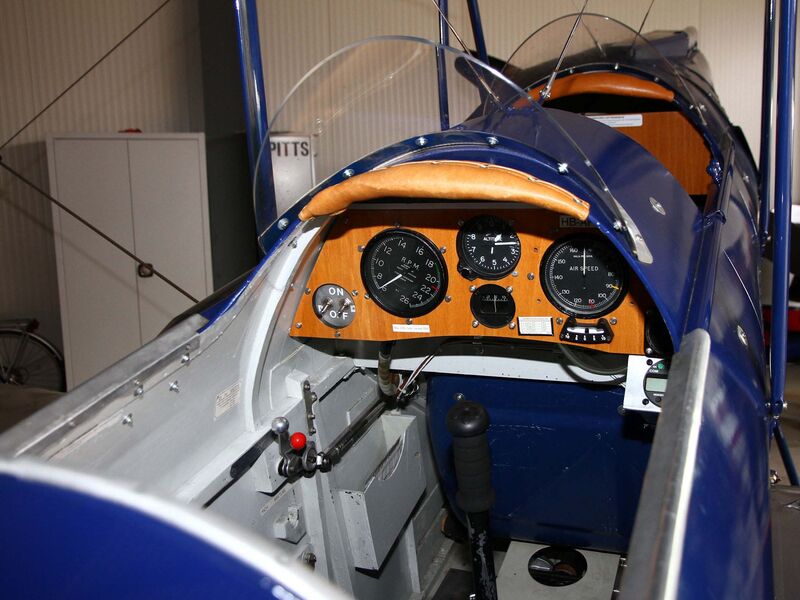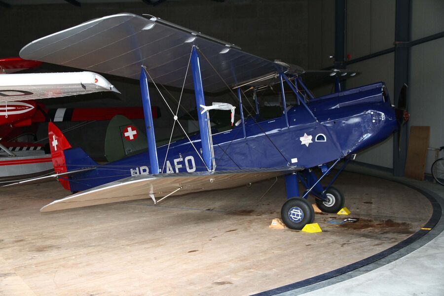 Unser Präsident Thomas Bitterlin überreichte Peter Dätwyler als Dankeschön für die Möglichkeit zur Museumsbesichtigung ein Set von Konstruktionsplänen einer Bede BD-5. Anschliessend teilten wir uns in zwei Gruppen auf. Eine Gruppe benutzte als erstes die Gelegenheit, die Hangars der Fluggruppen mit ihren fliegenden Preziosen zu besichtigen. Einer der Hangars ist mit einer grossen Drehscheibe ausgestattet, was das Hangarieren enorm erleichtert, ohne dass andere Maschinen auch verschoben werden müssen. Schliesslich stehen dort nebst der uns bestens bekannten Piper Super Cub HB-PAV von Ueli Wenger auch die 1931 gebaute, wunderschöne DeHavilland Gipsy Moth HB-AFO von Willy Kämpfer. Beide natürlich verdiente AAA-Mitglieder. Willy erklärte uns anschaulich viele interessante Details an seiner Gipsy Moth. Wer hätte bei einem Flugzeug dieses Baujahres schon selbständig ein- und ausfahrende Vorflügel an den oberen Flügeln erwartet?