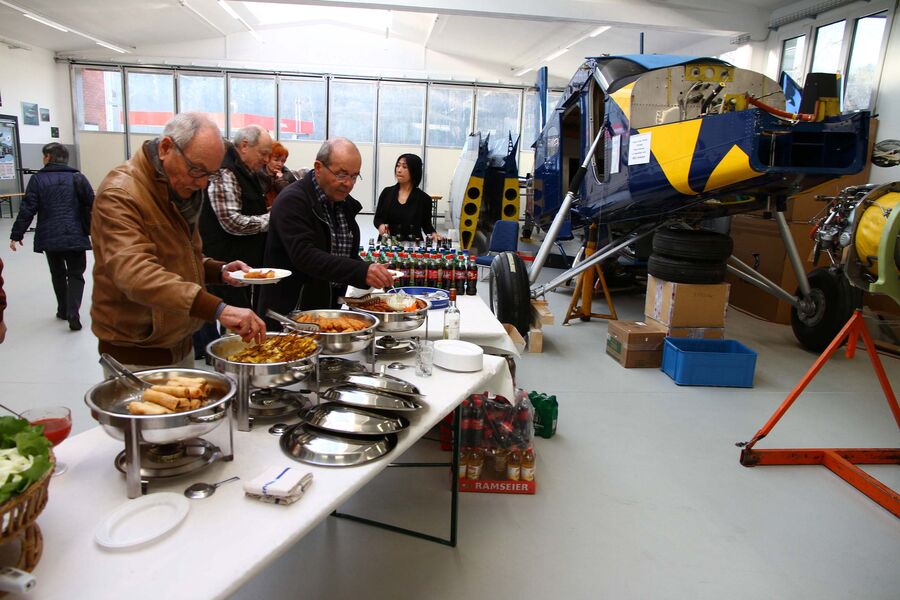 Nach dieser geballten Ladung von aviatischen Impressionen und Informationen waren alle Mitglieder vom AAA-Vorstand zu einem Apéro mit ausgezeichneten thailändischen Spezialitäten eingeladen. Verwöhnt wurden wir von der Küche des Flugplatz-Restaurants «Flügerli». Kompliment und herzlichen Dank!