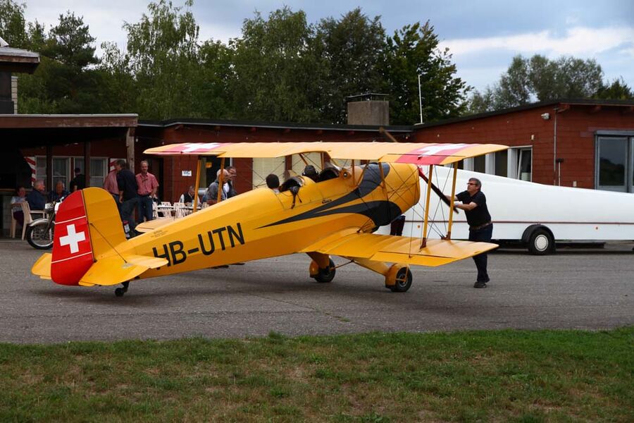 Das letzte «Fly + Grill» dieses Jahres fand am 2. September 2015 wie immer im Birrfeld statt. Nachdem sich das Wetter besser als erwartet entwickelte, flogen auch Barnstormer-Piloten aus Lommis, Triengen und Bern-Belp mit ihren fantastischen fliegenden «Kisten» ein. Natürlich fehlten auch zwei Lokalmatadoren nicht. Die Möglichkeit, unter anderem mit sehr raren Maschinen wie der Curtiss Travel Air oder der Fairchild 24 zu fliegen, wurde von unseren Mitgliedern rege benutzt. Bei deren Rückkehr sah man nur glückliche Gesichter. Zeit, um sich dann am leckeren Salatbuffet und vom Grillstand beim Grillmeister Joel mit feinen Würsten zu bedienen.